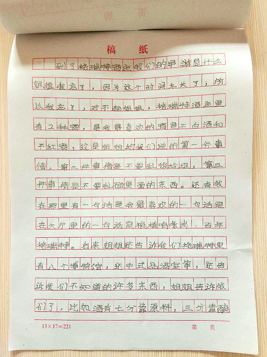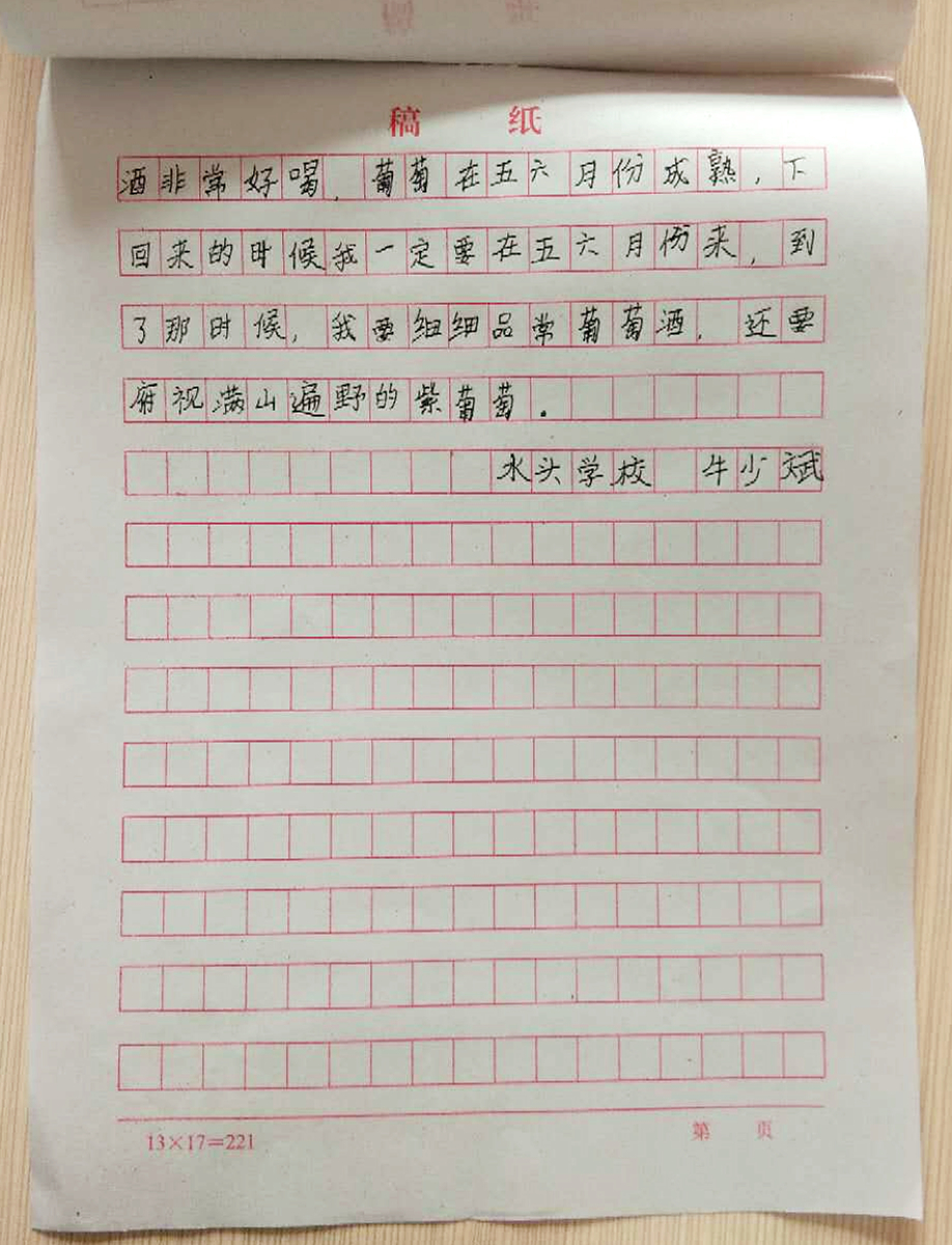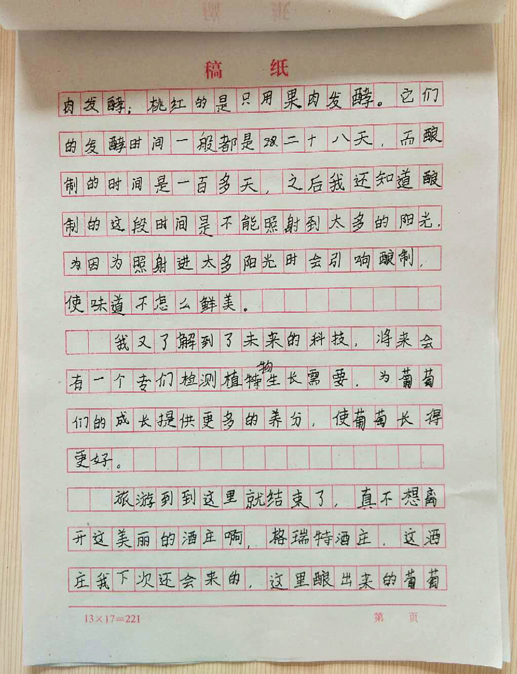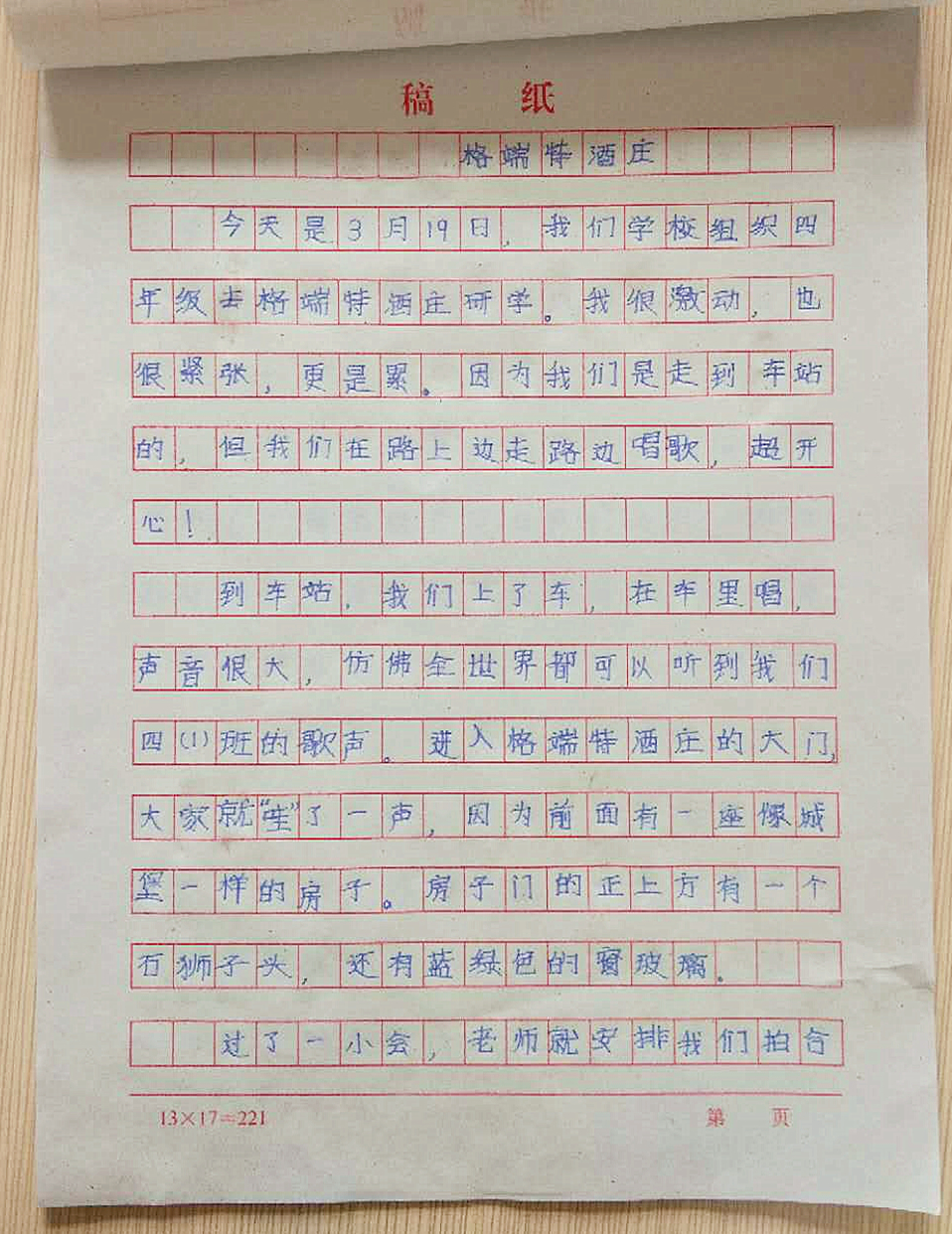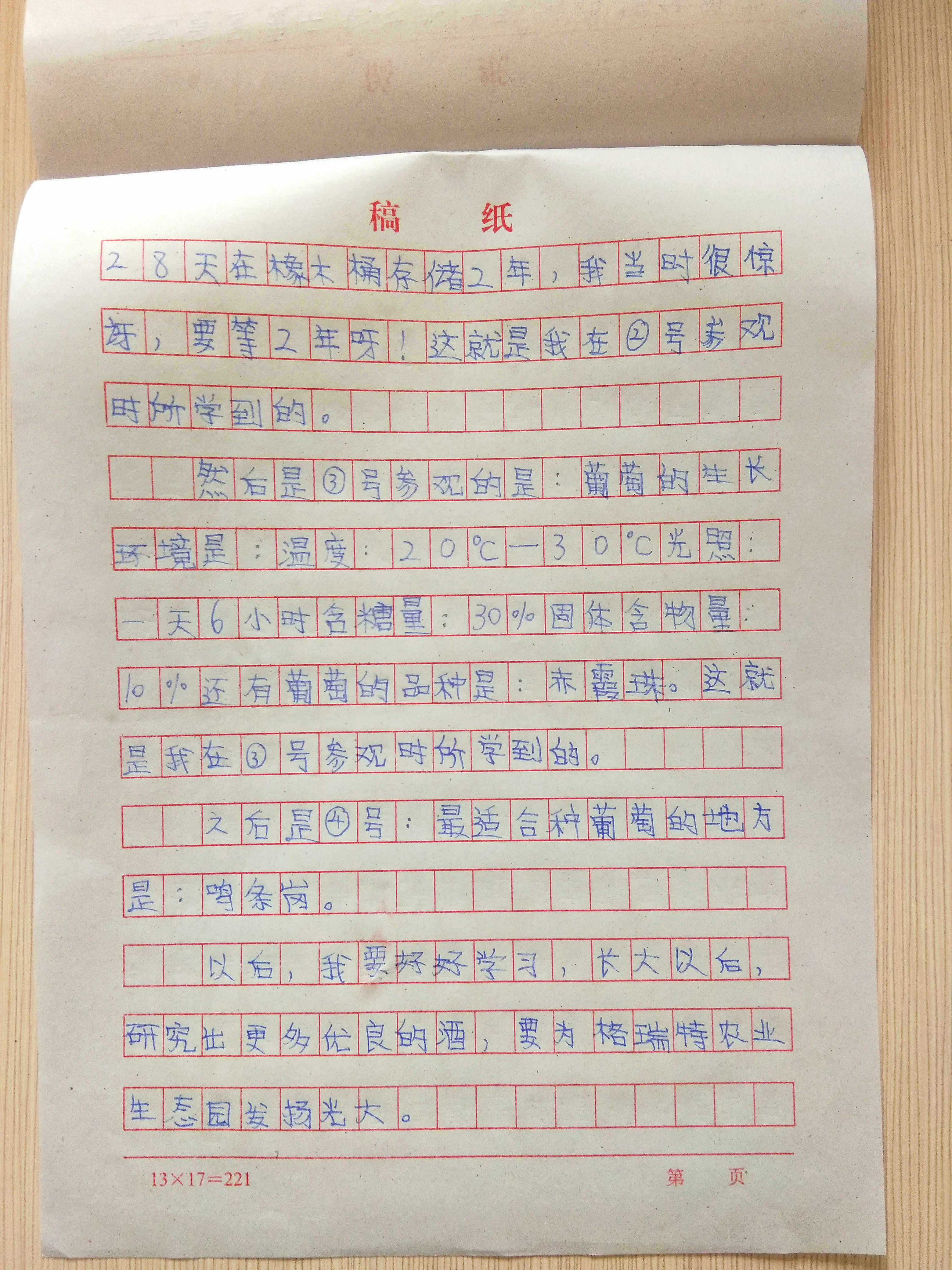怎麽樣!可(kě)愛的同學們在參觀格瑞特酒莊之後,寫下了一篇篇觀後感。這稚嫩的字體(tǐ),用心的言語,表達了他(tā)們對格瑞特酒莊 的滿意與祝福。展信如(rú)晤,見(jiàn)字如(rú)面,一紙信箋,如(rú)此之遠(yuǎn),又如(rú)此之近。
