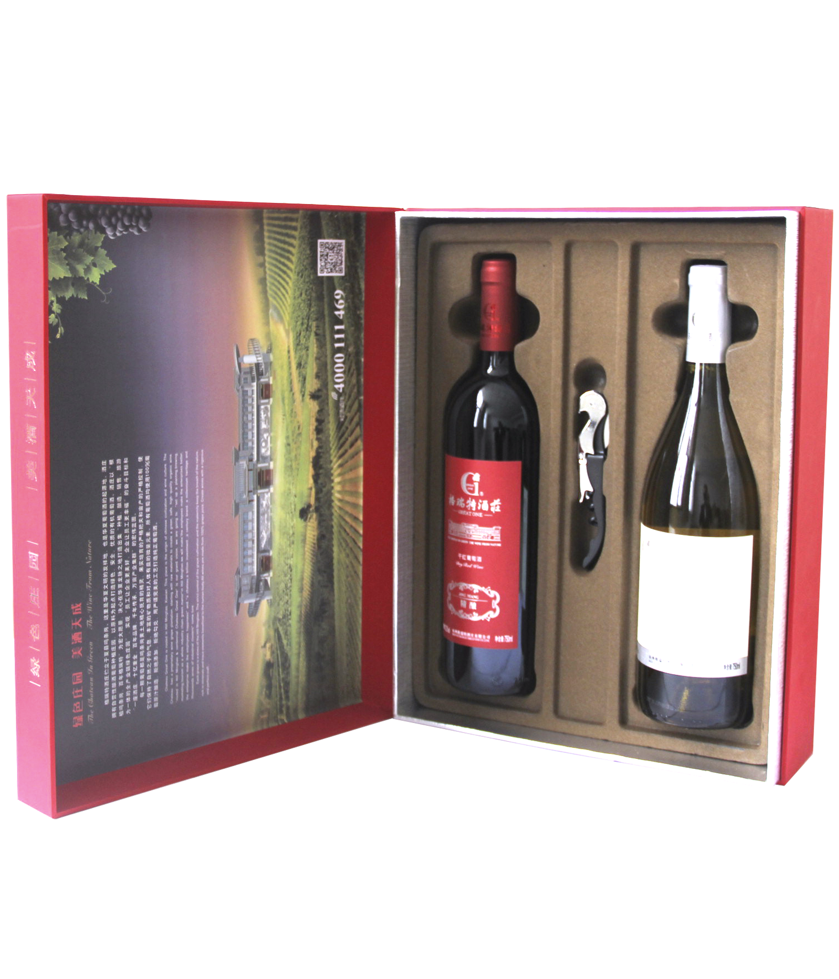 親情禮盒内含精釀幹紅(hóng)和珍釀幹白(bái)各一瓶,一盒可(kě)以品鑒到兩款不同風(fēng)格的葡萄酒。價格親民(mín),是親朋好友之間的饋贈佳品。禮盒采用喜慶的紅(hóng)色設計(jì),帶給人(rén)濃濃的暖意。是私人(rén)饋贈和葡萄商務饋贈的佳品。