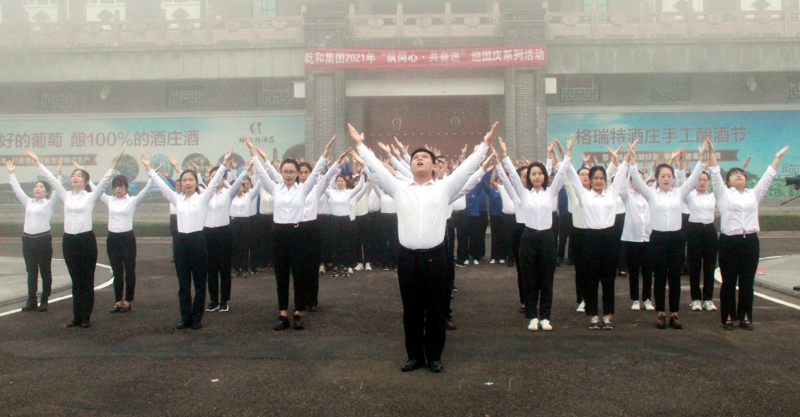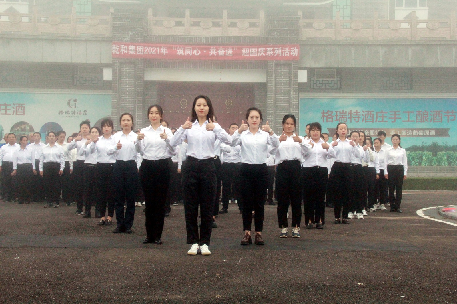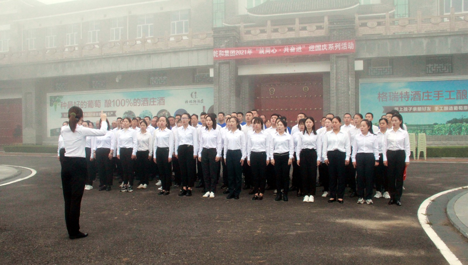 在國(guó)慶節來(lái)臨之際,爲隆重熱(rè)烈地慶祝中華人(rén)民(mín)共和國(guó)成立72周年(nián),進一步加強公司員(yuán)工(gōng)的團隊凝聚力,弘揚和培育民(mín)族精神,激發愛國(guó)主義情感,于9月30日(rì)早8點在格瑞特酒莊廣場開展“ 築同心·共奮進 ”迎國(guó)慶系列活動。格瑞特莊園全體(tǐ)人(rén)員(yuán)參加。